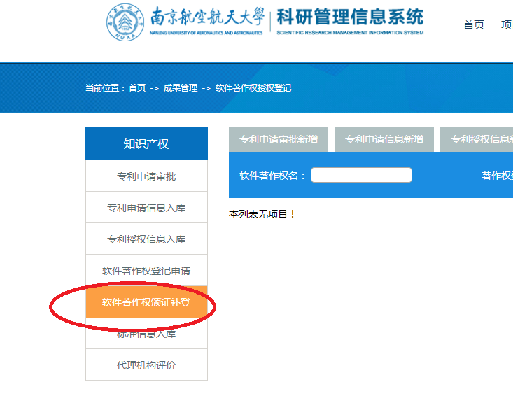 负责人在获得证书后,登录学校学校科研管理系统“软件著作权颁证补登”模块,在原有申请信息基础上登记证书信息并上传证书图片。此处信息作为正式的软件著作权信息,作为考核依据,请务必及时完成颁证补登。