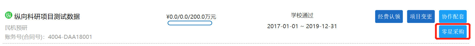 1.在项目列表中点击“零星采购”按钮,进入零星采购页面: