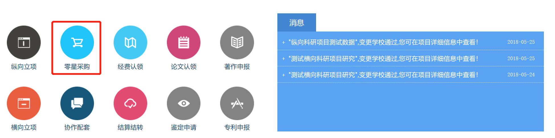 3.亦可点击系统首页的“零星采购”图标,进入零星采购页面: