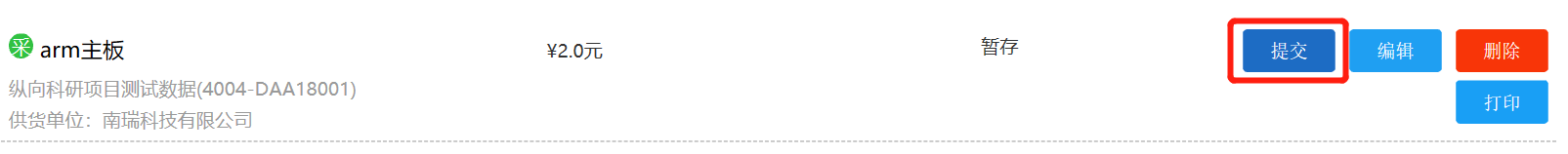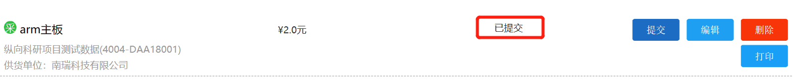 6.审核通过后,项目负责人“打印”审批表,并携带审批表到科研服务中心领取零星采购合同。