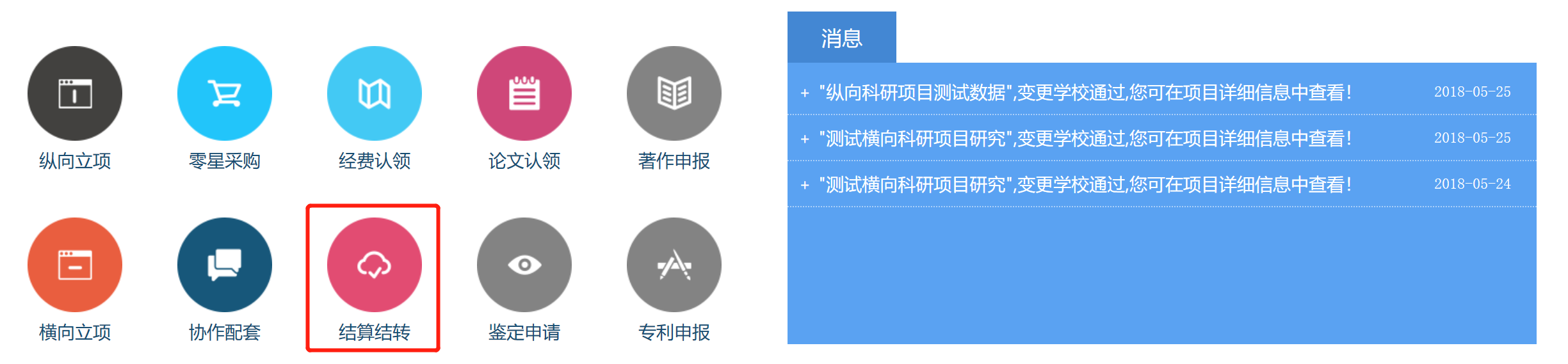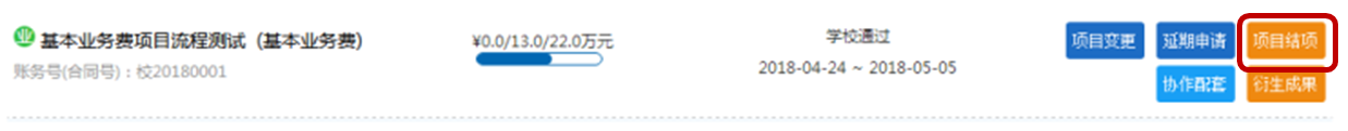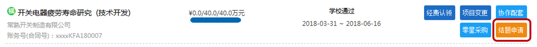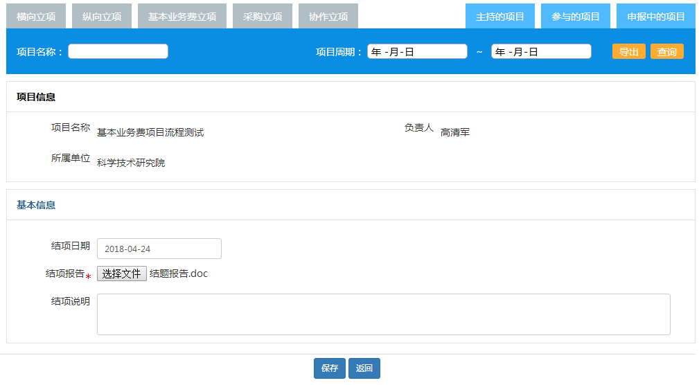 在本系统中,“项目结题”是指横向和基本科研业务费科研项目的结题。纵向科研项目结题以主管部门信息为准,由业务主管统一录入系统。