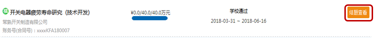 4.结题审核通过后,项目列表仅保留“结题查看”功能。