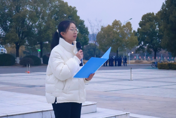 学生党员代表谭莉在国旗下发表题为《盛世莲花谱华章,民族富强映辉煌》的演讲。她从澳门回归的重大意义出发,强调作为新时代青年,要努力学习科学文化知识,不断提升专业技能,积极投身社会实践,争做堪当民族复兴重任的时代新人,并呼吁同学们在未来为期两周的金工实习中,打磨手中零件,磨砺内心力量,在一锤一錾中领略“精益求精、专注严谨”的工匠精神,培养吃苦耐劳、严谨务实的工作作风。