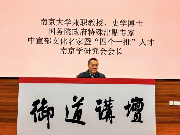 11月25日下午,南京出版传媒集团总经理、党委副书记、南京出版社社长,南京学研究会会长卢海鸣做客御道讲坛,带来题为《虎踞龙盘今胜昔:从南京历史中感悟信仰的力量》的专题讲座。学院党委书记刘健荣,党校副校长、党委组织部副部长庞小燕,学院党委副书记王宁和三百余师生代表参与讲座。
