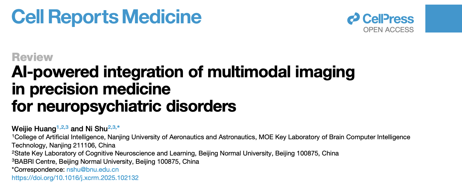 近日,学院题为“AI-powered integration of multimodal imaging in the precision medicine for neuropsychiatric disorders”的研究论文被医学领域国际顶级期刊《Cell Reports Medicine》录用。学院iBrain课题组黄伟杰副研究员为第一作者,北京师范大学心理学部舒妮教授为通讯作者。这是学院首次以第一单位在该期刊发表论文。