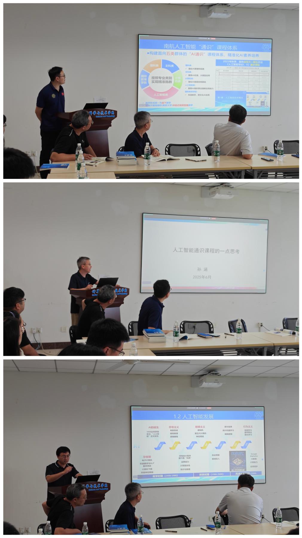 会上,张道强系统阐述课程总体目标与重要意义,强调其在培养学生人工智能素养中的关键作用。朱旗介绍了我校人工智能通识课程体系建设的进展与特色,肯定了课程组在教学资源开发等方面的探索。