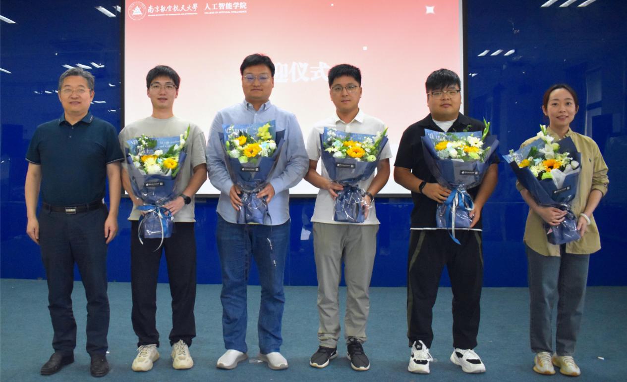 新入教职工代表于银菠、丁成、张浩、阮天宸、姚宇欣分别进行了自我介绍。吴启晖向新入教职工代表赠送鲜花。