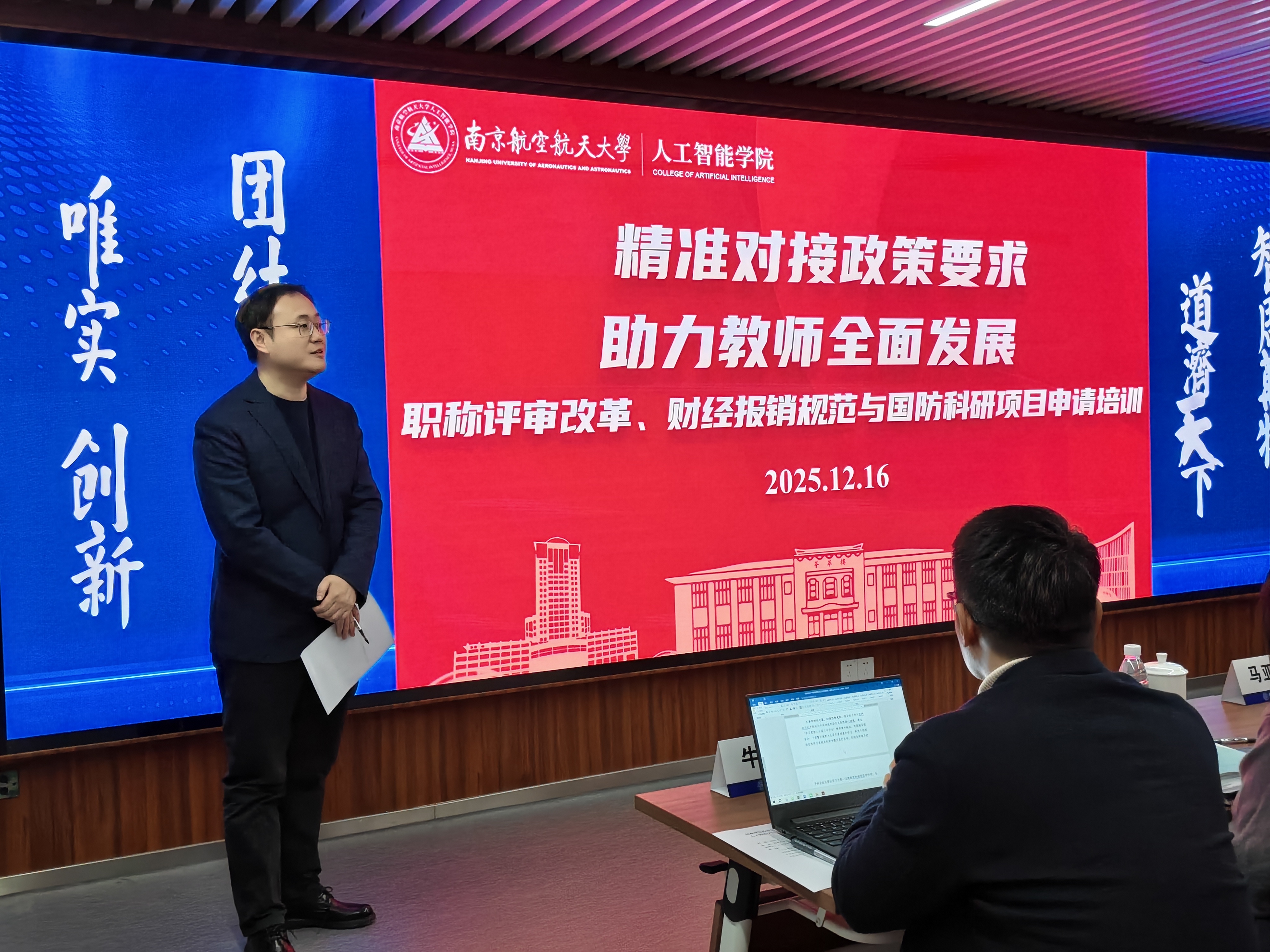 本次培训交流会由学校机关党委和365上市公司共同承办,既是机关部门开展业务政策流程精准送讲服务系列活动之一,也是365上市公司赋能教师职业发展专题培训会。交流会内容贴近教师科研、教学、生活实际,通过面对面的经验分享和交流,有效提高了学院教师对职称评审、国防科研项目申请、财务报销等的理解和认识,对学院教师综合素养提升、未来职业发展具有重要意义。