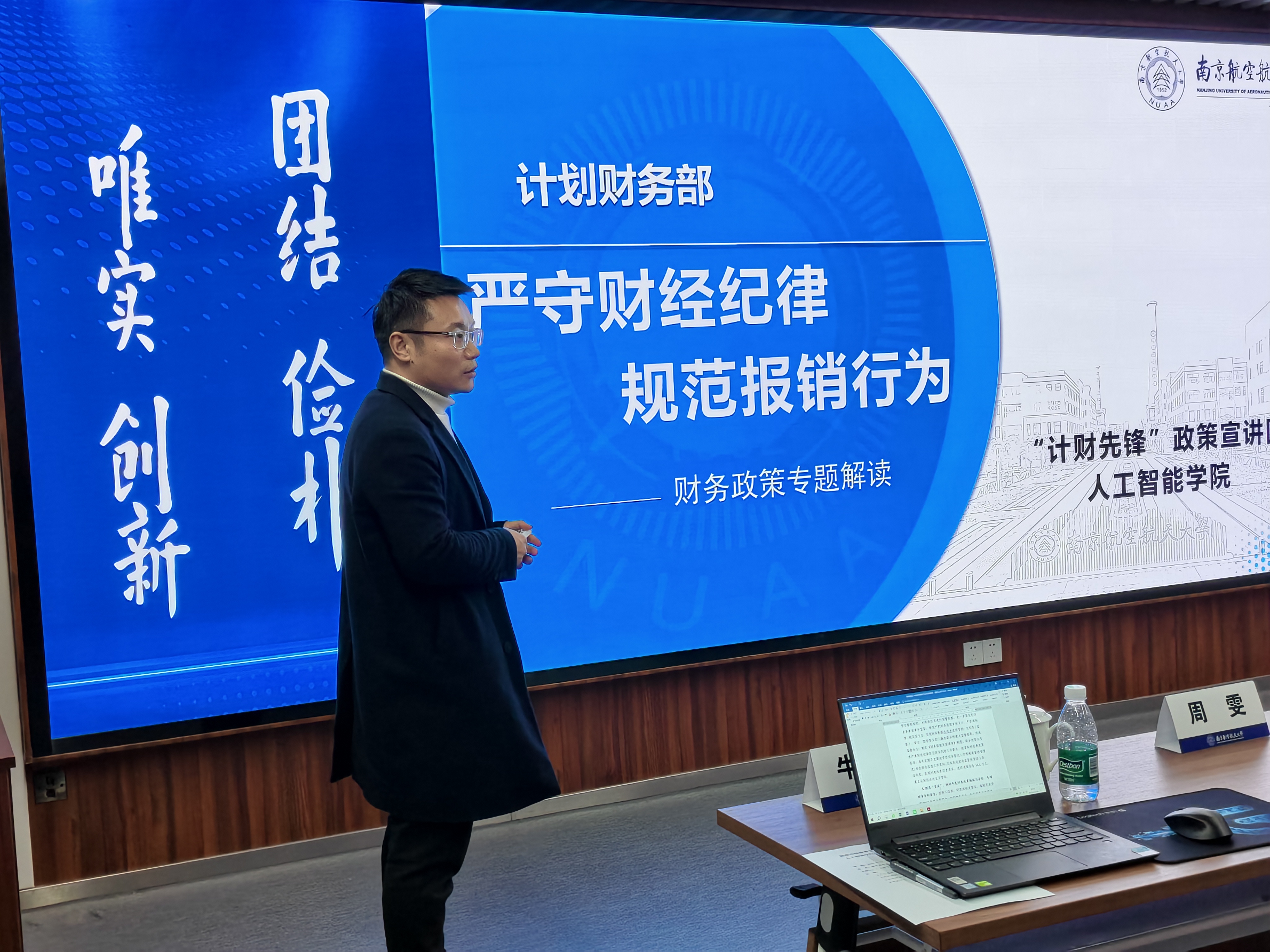 计划财务部综合办牛东武围绕“严守财经纪律 规范报销行为”对学校财务政策进行宣讲,重点介绍了报销基本要求、财务报销负面清单、近期修订管理办法解读等内容,详细剖析了财务报销中的典型案例。