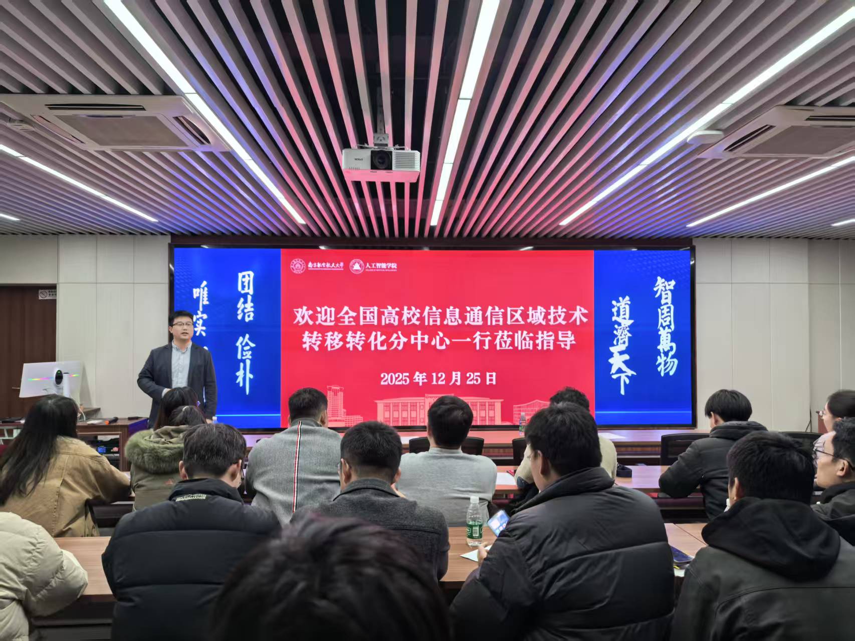 为促进我院科技成果转化、加强校企合作与技术转移,12月25日,学院邀请全国高校信息通信区域技术转移转化中心(江苏)分中心(以下简称“分中心”)校企事务部技术经理人邹宇锋进行技术成果转化交流指导,院内师生代表三十余人参加会议。学院副院长秦杰主持会议。