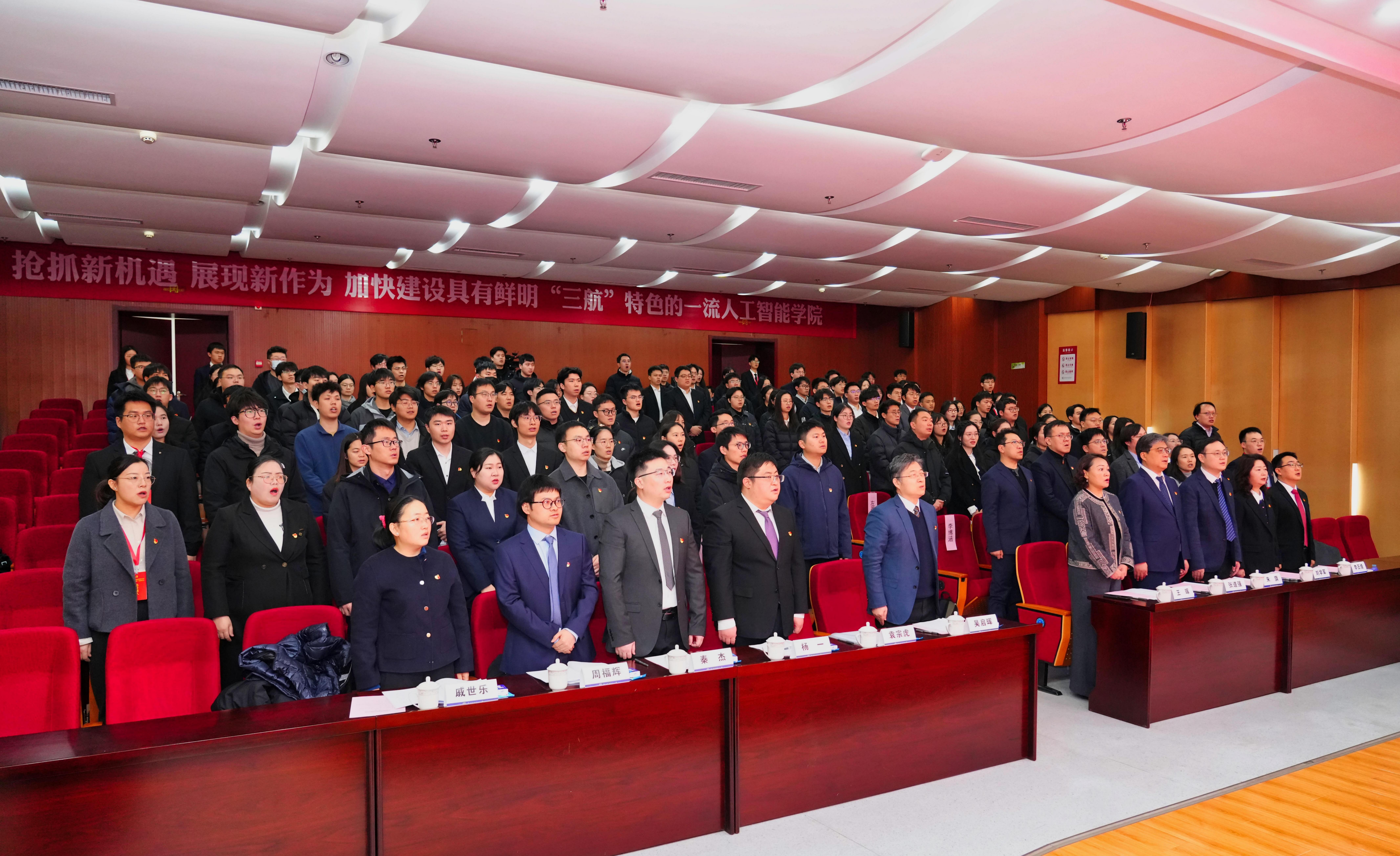袁宗虎代表学院党委作《抢抓新机遇展现新作为 加快建设具有鲜明“三航”特色的一流365上市公司》工作报告。报告回顾了学院党委成立以来取得的阶段性成效,深刻剖析了当前面临的新形势与新挑战,确立了“建设具有鲜明‘三航’特色的一流365上市公司”的学院发展目标,明确了“人工智能赋能全校、借力全校资源办人工智能”的发展思路,制定了“三步走”发展战略,统筹实施“四大强基工程”,系统推进“六大赋能行动”,为持续推进学院事业高质量发展擘画蓝图、指明路径。